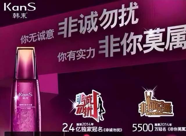 2013年,韩束以2.4亿元冠名江苏卫视《非诚勿扰》,次年,韩束又“斥巨资”5亿元续约,成为当时“中国广告史第一大单”,这也让韩束一炮而红;2014年,韩束进军微商,微商代理团队多达10万人,“40天销售了一个亿”的战绩,让韩束获封“第一微商”。